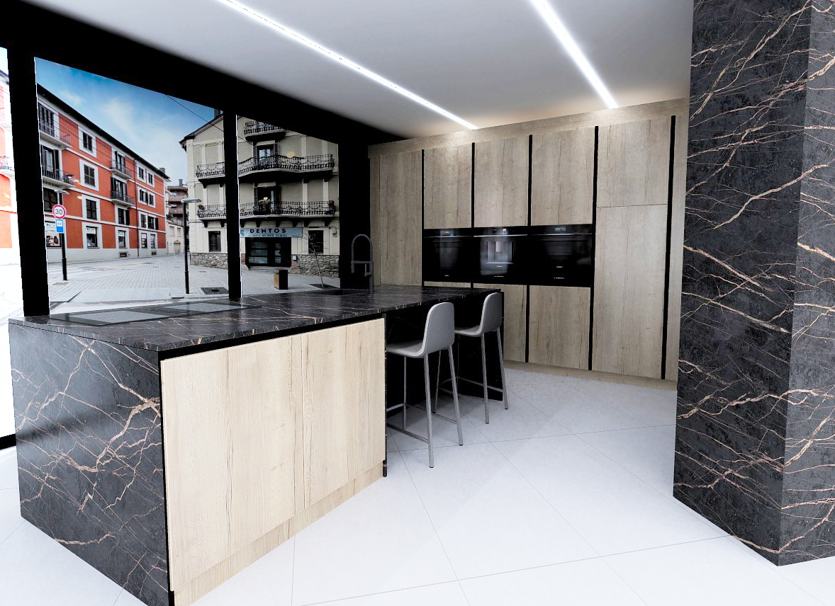 A l’exposició hi trobaràs 4 ambients: 3 cuines Delta i 1 cuina Porcelanosa amb living. Una de les cuines és operativa per fer showcookings i demostracions.